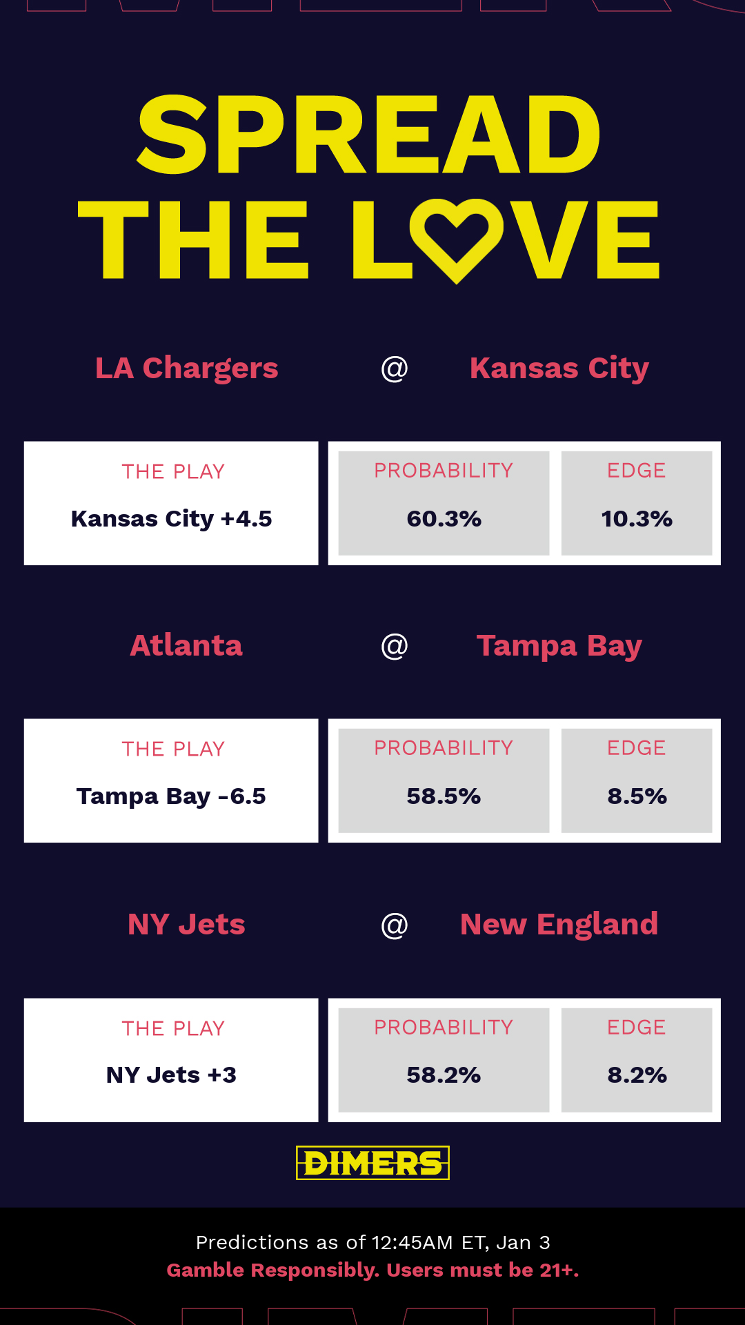 The final week of the regular season is here and it's time to cash in on some spread plays before the playoffs!