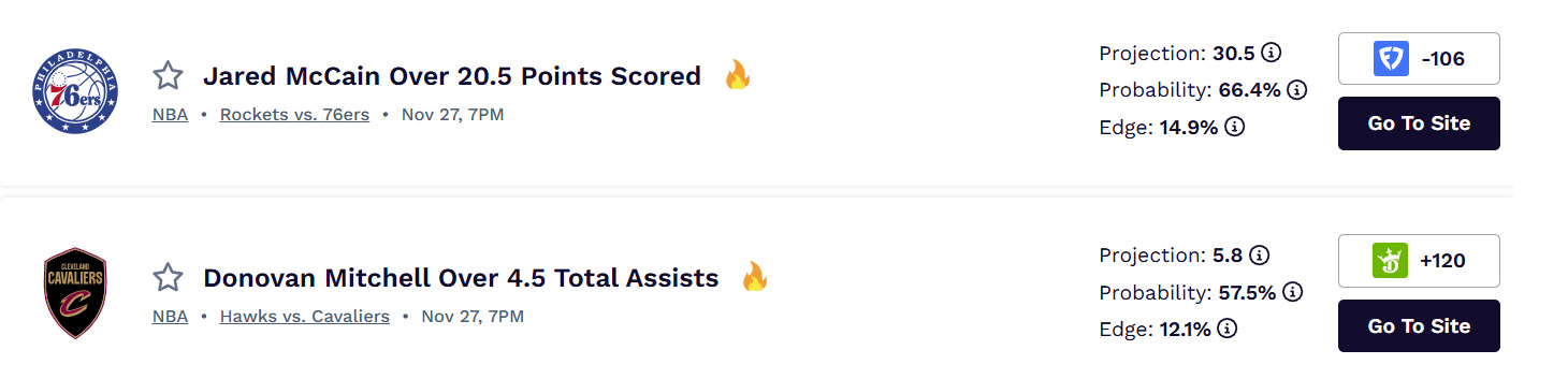 - NBA Best Props: Player edges and projections from our predictive analytics model